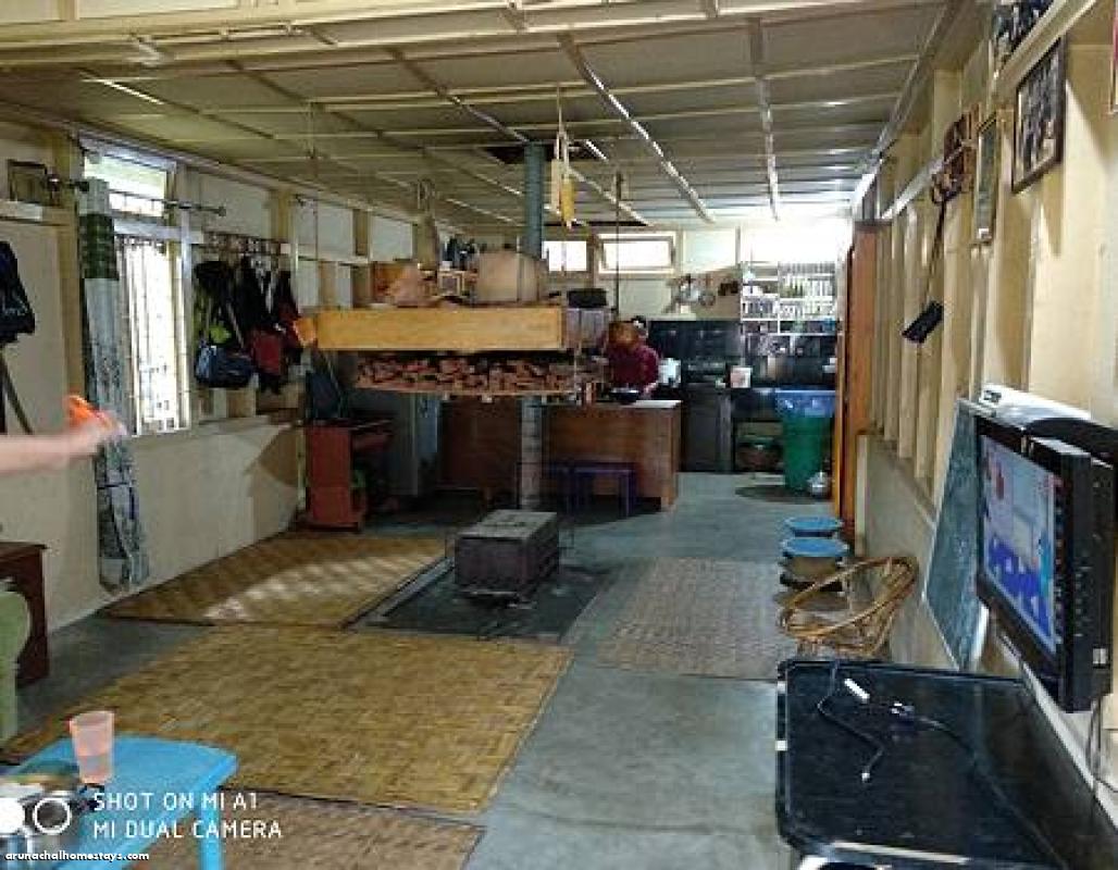 Kitchen is made of traditional Apatani style and there is a fire place. There is another kitchen which is fully modern, where guest can prepare their food. Guest usually gather or share to have a talk, to have their breakfast or dinner in traditional kitchen and guest can enjoy TV.